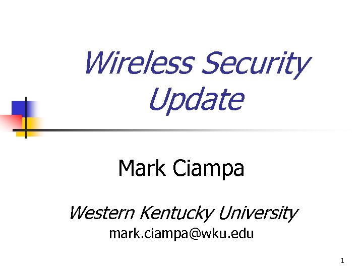 Wireless Security Update Mark Ciampa Western Kentucky University mark. ciampa@wku. edu 1