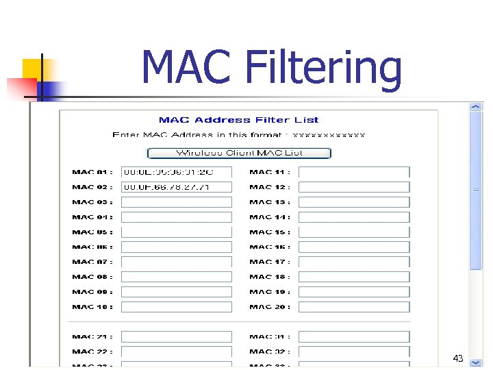 MAC Filtering 43