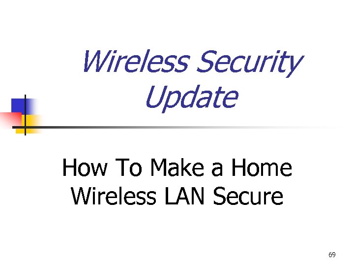 Wireless Security Update How To Make a Home Wireless LAN Secure 69