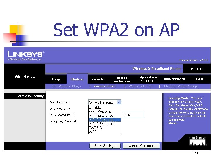 Set WPA 2 on AP 71