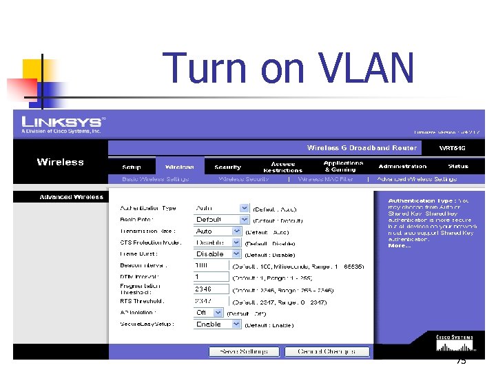 Turn on VLAN 75