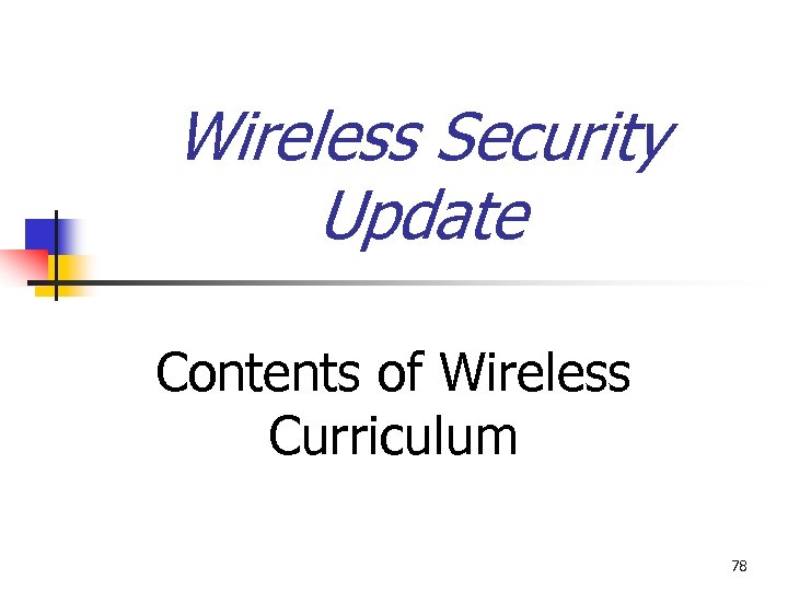 Wireless Security Update Contents of Wireless Curriculum 78