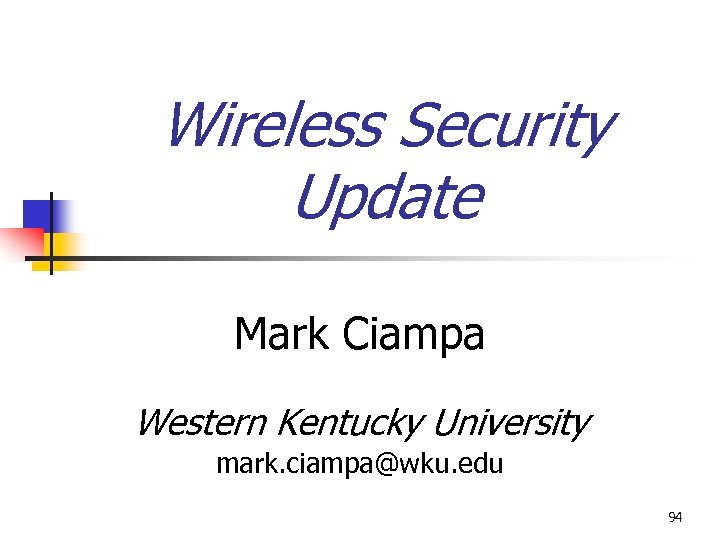 Wireless Security Update Mark Ciampa Western Kentucky University mark. ciampa@wku. edu 94