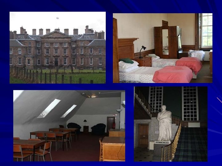 Dalkeith House and Estate 300 year old home of Buccleuch family Dormitory style sleeping rooms (two-six students per room) Numerous indoor/outdoor recreation areas Classrooms, study areas computer lab Set on 1000 acres of country park on the eastern edge of Dalkeith