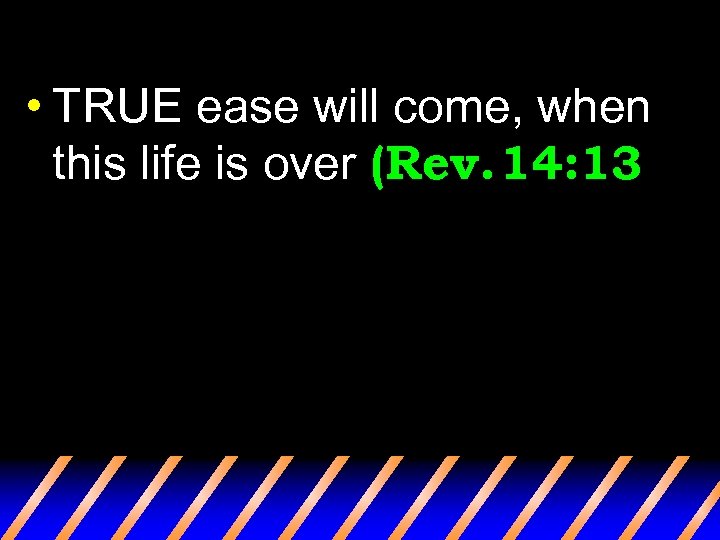 • TRUE ease will come, when this life is over (Rev. 14: 13