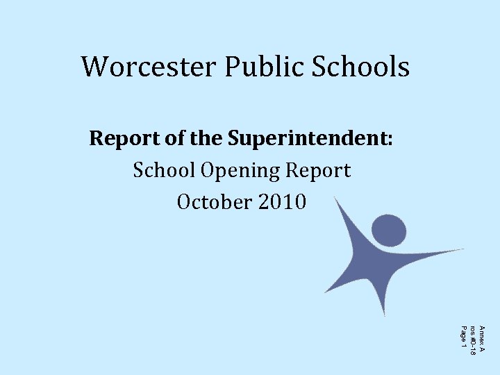 Worcester Public Schools Report of the Superintendent: School Opening Report October 2010 Annex A ros #0 -18 Page 1