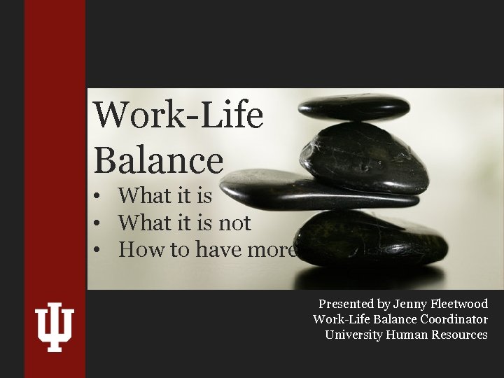Work-Life Balance • What it is not • How to have more Presented by Jenny Fleetwood Work-Life Balance Coordinator University Human Resources