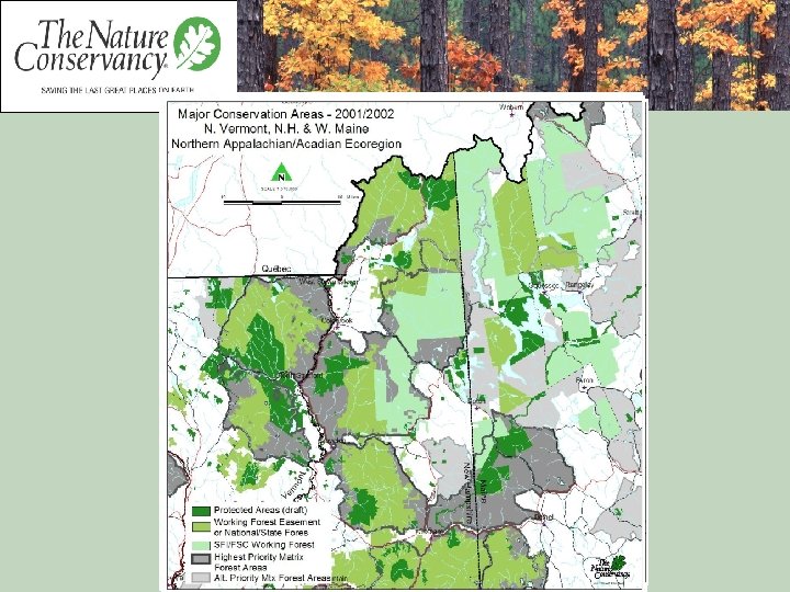 TNC’s approach • Protecting forests is too big a task for any one group—we need to work together. • Success will require building a new tool kit of working forest easements, tax policy, conservation planning and incentives
