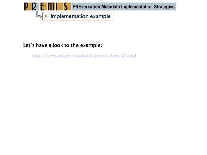 Implementation example Let´s have a look to the example: http: //www. loc. gov/standards/premis/louis-2 -1. xml