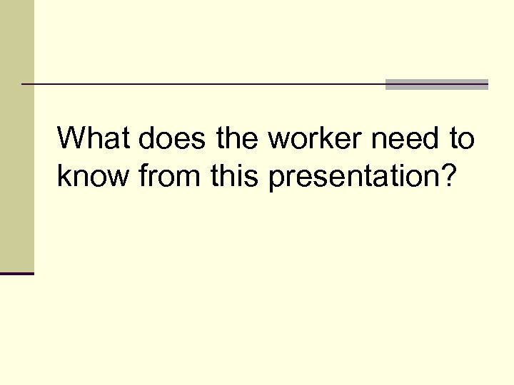 What does the worker need to know from this presentation?