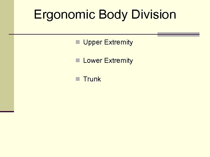 Ergonomic Body Division n Upper Extremity n Lower Extremity n Trunk