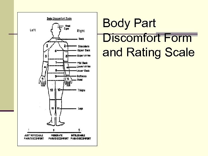 Body Part Discomfort Form and Rating Scale