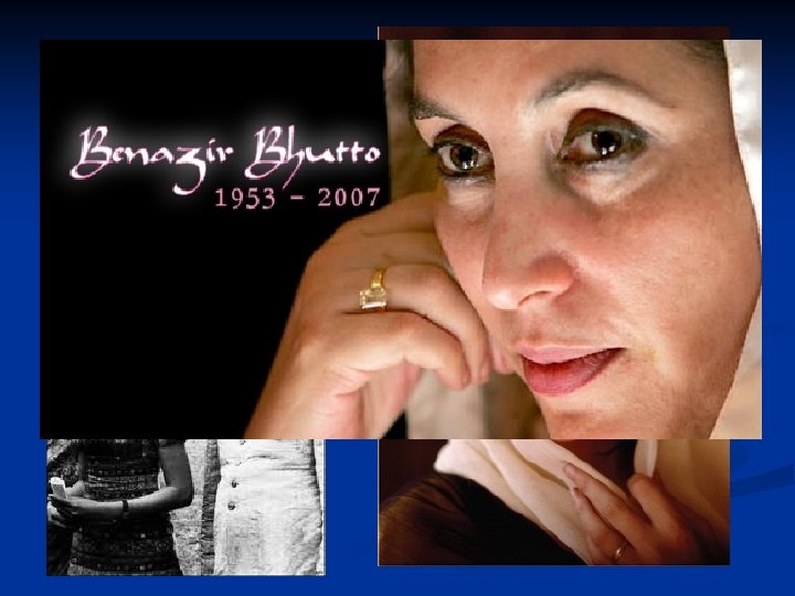 Benazir Bhutto This was the first female head of a Muslim state (Pakistan) and was killed by a suicide bomber during a political campaign in 2007.