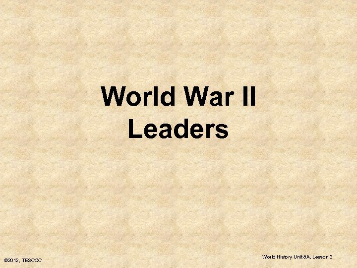 World War II Leaders © 2012, TESCCC World History Unit 8 A, Lesson 3