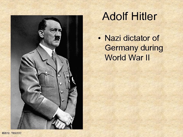 Adolf Hitler • Nazi dictator of Germany during World War II © 2012, TESCCC
