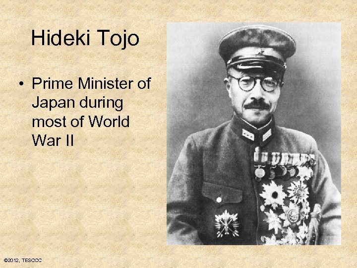 Hideki Tojo • Prime Minister of Japan during most of World War II © 2012, TESCCC