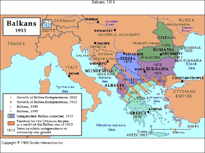 n Balkans before World War I – Many new nations (Serbia, Greece, Romania, etc) recently independent from Ottoman Empire, Austro-Hungarian Empire. – Made alliance with great powers of Europe (GB, Russia, Germany, France). – Tensions in region led to WW I.