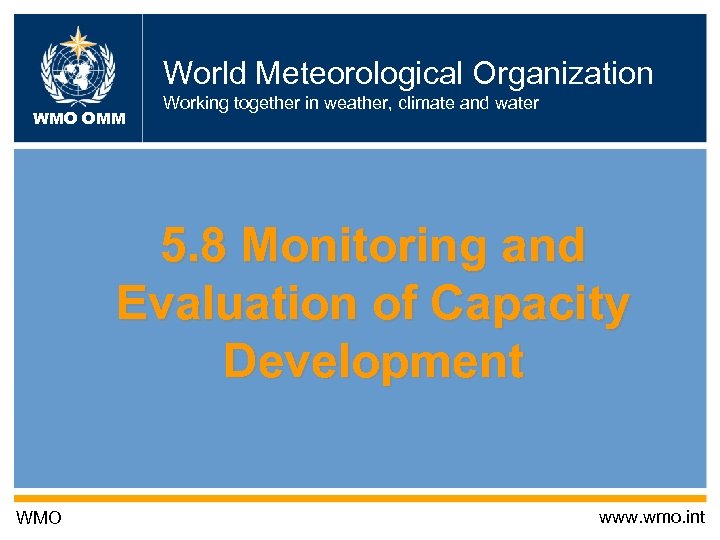 World Meteorological Organization WMO OMM Working together in weather, climate and water 5. 8 Monitoring and Evaluation of Capacity Development WMO www. wmo. int