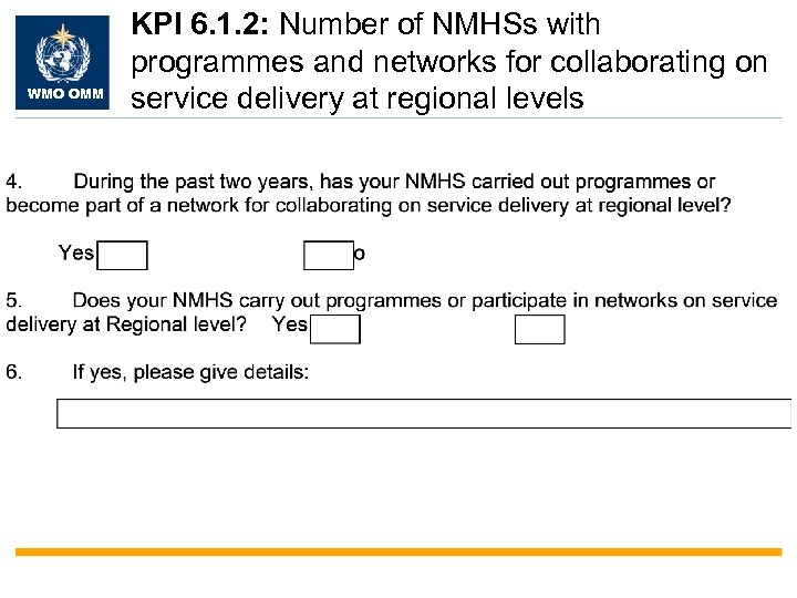 WMO OMM KPI 6. 1. 2: Number of NMHSs with programmes and networks for collaborating on service delivery at regional levels