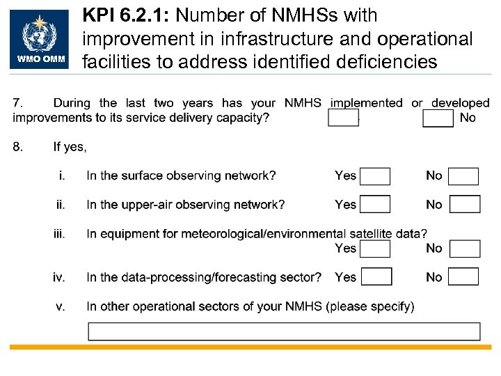WMO OMM KPI 6. 2. 1: Number of NMHSs with improvement in infrastructure and operational facilities to address identified deficiencies