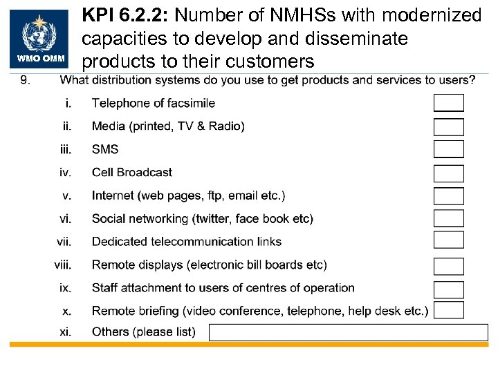 WMO OMM KPI 6. 2. 2: Number of NMHSs with modernized capacities to develop and disseminate products to their customers