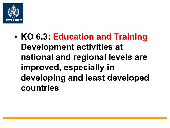 WMO OMM • KO 6. 3: Education and Training Development activities at national and regional levels are improved, especially in developing and least developed countries