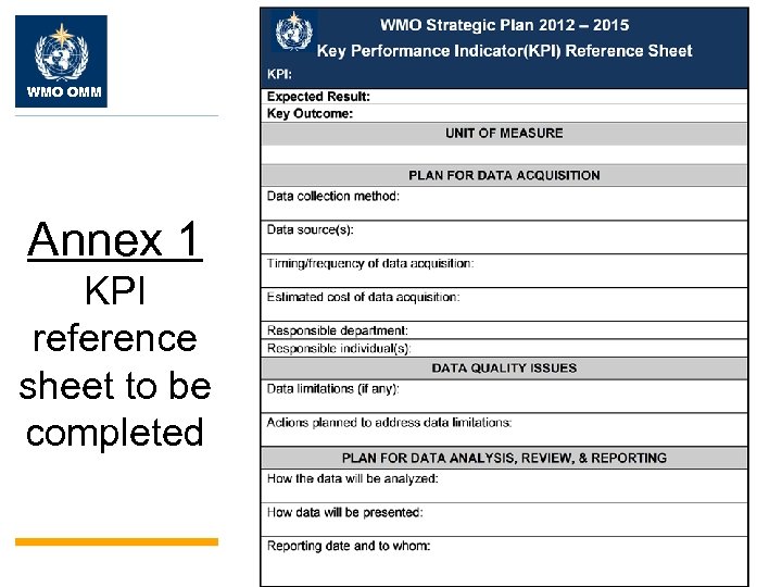 WMO OMM Annex 1 KPI reference sheet to be completed