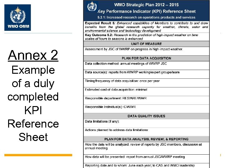 WMO OMM Annex 2 Example of a duly completed KPI Reference Sheet