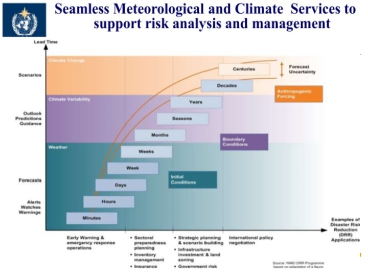 Need for Strengthening National and Regional Operational Capacities policies/legislation/coodination and planning Reduction of Risks: Life, economics sectors: International aspects Regional aspects National aspects, with consideration for evolving DRR DRM and civil protection, agriculture, water resource management, infrastructure and planning, urban development, health insurance and financial markets, etc Products and Service Delivery Capacity Building Forecasting and analysis tools Observations and data Research and modeling