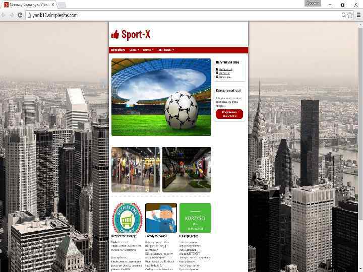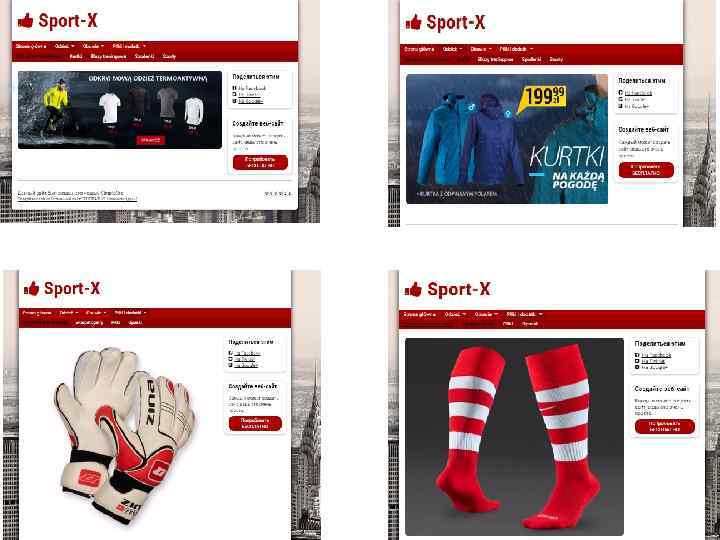 Billboard(reklama) Sklep internetowy To dużych rozmiarów tablica lub plakat reklamowy, stosowany głównie w reklamie zewnętrznej. To serwis internetowy dający możliwość kupowania i sprzedawania produktów przez Internet, jedna z form handlu elektronicznego. Sklep internetowy : «SPORT-X» http: //yarik 12. simplesite. com/