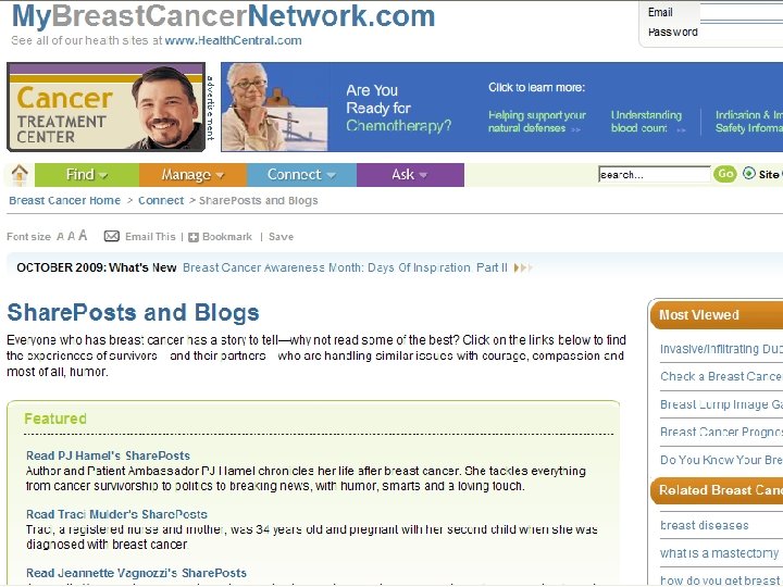 Patients use of the internet n Information gathering n Support n Socialisation/blogging n Purchasing aids n Therapeutic outlet
