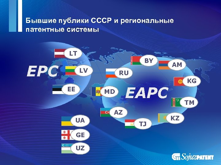 Бывшие публики СССР и региональные патентные системы LT EPC BY LV EE RU MD GE UZ KG EAPC AZ UA AM TJ TM KZ