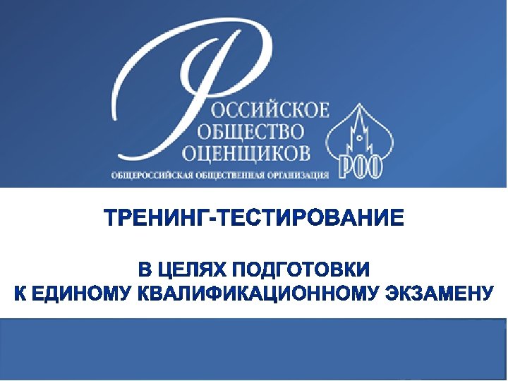 www. sroroo. ru О проекте: В Российском обществе оценщиков продолжается работа по подготовке к предстоящему единому квалификационному экзамену членов РОО, желающих стать экспертами СРО, в соответствии с требованиями статьи 16. 2 Федерального закона от 29 июля 1998 г. N 135 -ФЗ "Об оценочной деятельности в Российской Федерации". В этих целях, предлагается использовать уже существующую и работающую с октября 2012 г. систему тренинг-тестирования. ОБЩЕРОССИЙСКАЯ ОБЩЕСТВЕННАЯ ОРГАНИЗАЦИЯ РОССИЙСКОЕ ОБЩЕСТВО ОЦЕНЩИКОВ
