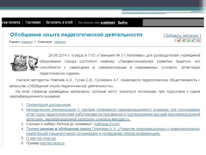 www. ufclub. moy. su/ПЕДАГОГУ /ОБМЕН ОПЫТОМ/. . . ufclub@list. ru Обобщение опыта педагогической деятельности Гусев С. В. Плетнёв А. Э. Сугакевич А. Г. учителя физики лицея БРУ квалификационная категория «учитель-методист»