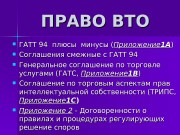 Соглашение ВТО по сельскому хозяйству www. worldec. ru Меры «голубого ящика» – l прямые платежи в рамках программ ограничения производства, производимые по отдельным сельхозугодьям, культурам и видам рогатого скота, l а также любые другие меры сельхозподдержки, если они выделяются в объеме не превышающем 5% от общей стоимости производства данной продукции. Указанные меры не подпадают под ограничения в рамках обязательств стран-участниц Соглашения по сельскому хозяйству. Russia and WTO 26