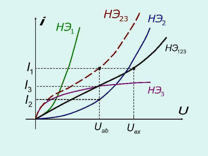 Пример U, В 0. 2 ВАХ НЭ: 0. 3 0. 4 0. 5 0. 6 0. 7 0. 8 0. 9 1 I, м. А 0. 05 0. 1 0. 2 0. 4 0. 5 0. 8 1. 2 1. 5 2