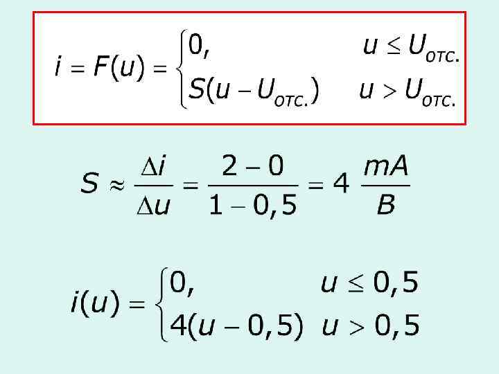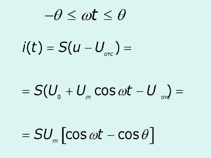 Режим большого сигнала Замена ВАХ отрезками прямых линий, образующих в интервале аппроксимации непрерывную функцию f(x). напряжение отсечки S – крутизна полученной ВАХ в области изменения тока НЭ