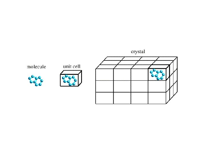 Periodicity and Symmetry in a Crystal • A crystal has long range ordering of building blocks that are arranged in an conceptual 3 -D lattice. • A building block of minimum volume defines unit cell • The repeating units (protein molecule) are in symmetry in an unit cell • The repeating unit is called asymmetric unit – A crystal is a repeat of an asymmetric unit