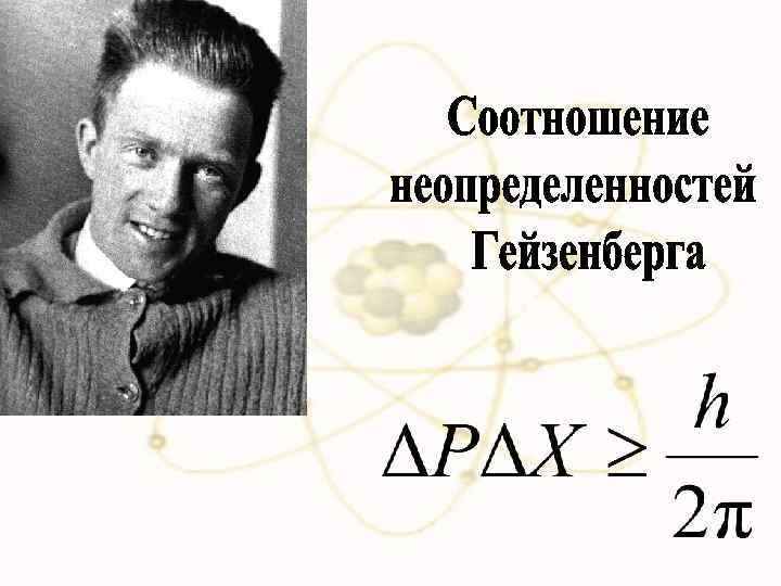 х Аналогичное соотношение имеет место для y и py, для z и pz, а также для других пар величин В классической механике такие пары называются канонически сопряженными: соотношение неопределенности для величин A и B. Гейзенберга Это соотношение открыл в 1927 году Вернер Гейзенберг.