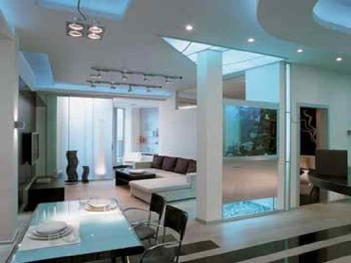 Одной из благодатных тем в эстетике хай-тека выступают светильники. Ведь свет важен не только сам по себе, но и просто незаменим в качестве способа подчеркнуть достоинства фактуры того или иного материала. А тем более материала с блестящей отражающей поверхностью. Поэтому, кроме общего освещения, в хай-теке находят применение многочисленные настенные и напольные, вмонтированные в мебель и точечные, рельсовые и прочие светильники, а также источники света на кронштейнах, тросах и всевозможных других конструкциях. Формы — простые. В основе — эргономика и функциональность. Плафоны чаще всего металлические или стеклянные, выдержанные в стилистике хай-тека, которая не приемлет многоцветности. Вообще-то стиль хай-тек в жилых интерьерах в чистом виде встречается довольно редко, гораздо чаще он используется в комбинациях с другими стилями, начиная от «этники» и заканчивая неоклассикой. Создание такого интерьера становится даже необходимостью, если в квартире проживает семья из нескольких человек, особенно разных поколений. У каждого из них свои вкусы, и каждый должен иметь в квартире свой уголок, в котором он чувствовал бы себя максимально уютно. Но такая квартира рискует превратиться в нагромождение несочетающихся между собой предметов и деталей интерьера. Найти решение и органично сочетать пожелания всех членов семьи — прямая задача дизайнера. Кстати, подобных удачных примеров достаточно в работах современных декораторов.