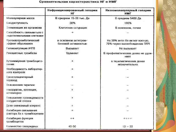 Лекция : Кровотечения Гепарин имеет побочное действие: Кровотечение Тромбоцитопения Остеопороз Развитие реакций гиперчувствительности Тромбоз (уменьшение содержания АТ-III) Низкая биодоступность Постоянные лабораторный контроль
