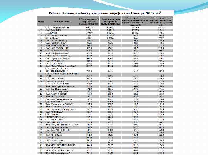 Совокупный ссудный портфель банков РФ в 2012 году вырос на 18. 3% или на 5. 26 трлн руб. , в то время как год назад этот показатель составил 29. 6%. Замедление темпов роста кредитования было вызвано целым рядом причин: Во-первых, в 2012 году стагнировало кредитование нефинансовых организаций – прирост ссуд корпоративному сектору составил всего лишь 12. 7%. Во-вторых, отрицательное влияние на динамику кредитного портфеля оказало укрепление рубля, которое из-за отрицательной переоценки валютных кредитов сократило прирост примерно на 1. 5 процентных пункта. В-третьих, сыграло свою роль межбанковское кредитование, объемы которого выросли всего на 6. 9% за 2012 год, в то время как годом ранее прирост составил 35. 5%.