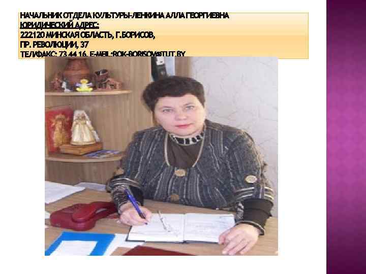 Основные направления развития. • В сфере культуры на 2011 -2015 годы предусматриваются меры поддержки, сохранения и восстановления культурноисторического наследия, обеспечения доступности культурных ценностей и услуг всем слоям населения, повышения их качества, развитие народного творчества. • На пятилетку определены следующие основные направления работы районных учреждений культуры: • формирование гражданских качеств личности, пропаганда здорового образа жизни, эстетическое воспитание подрастающего поколения; организация досуга населения: проведение массовых праздников, культурно-массовых мероприятий на базе учреждений культуры для различных возрастных категорий; • поддержка талантливой молодежи, продолжение традиции ежегодного проведения открытого районного фестиваля детских хоровых коллективов «Галасы дзяцінства» , фестиваля «Театральный марафон» , фестиваля детского творчества «Весёлые нотки» , Международного фестиваля детского творчества «Барысаўскі прыстанак» , областного конкурса-пленэра юных художников «Золотая палитра» , открытого районного фестиваля-конкурса «Калі душа спявае» , фестиваля эстрадной песни «Барысаўская зорачка» , фестиваля рок-музыки, районного праздника «Дожинки» ; • участие творческих коллективов, отдельных исполнителей в международных, республиканских, областных фестивалях и конкурсах по различных жанрам исполнительского искусства; • содействие коллективам народного творчества в получении звания «образцовый» и «народный» . • В рамках государственной программы «Дети Беларуси» , областной программы «Дискотека» , комплексного плана мероприятий по предупреждению безнадзорности, правонарушений, пьянства, наркомании, токсикомании среди несовершеннолетних учреждения культуры проводят: спортландии; конкурсно-игровые программы; вечера семейного отдыха; конкурсы детских рисунков; литературно-музыкальные композиции; танцевально-развлекательные программы; спектакли; детские утренники; театрализованные представления; акции; вечера отдыха; шоу-программы; народные обряды и праздники; информационные часы; выставки народного творчества; дискотечные программы. • Программу сохранения и развития культуры Борисовского района реализуют 703 работника из них: - 70 % - служащие (19% - руководители (директора, заместители директоров, заведующие учебной частью, заведующие хозяйством, заведующие детскими секторами)); - 78, 7% - специалисты (учителя, руководители кружков, аккомпаниаторы, хормейстеры, концертмейстеры);