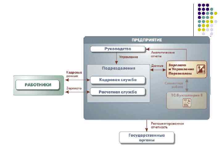 HRM конфигурации (модуль, компонент) в составе ERP-системы l l Системы планирования ресурсов предприятия – ERP (ERP, Enterprise Resource Planning) –служат для интеграции всех данных и процессов организации в единую систему. ERP-система – единая система, которая обслуживает все запросы сотрудников отдела кадров, коммерческого отдела, склада и других подразделений. Каждый из этих отделов обычно имеет собственную компьютерную систему, оптимизированную под особенности его работы. ERP-система комбинирует их все в рамках одной системы, которая работает с единой базой данных, так, что все отделы могут обмениваться информацией друг с другом. Современные ERP-системы обеспечивают выполнение всех основных функций предприятия, независимо от его рода деятельности или устава. В настоящее время ERP-системы применяются как в коммерческих, так и в некоммерческих структурах, в правительственных и неправительственных организациях.