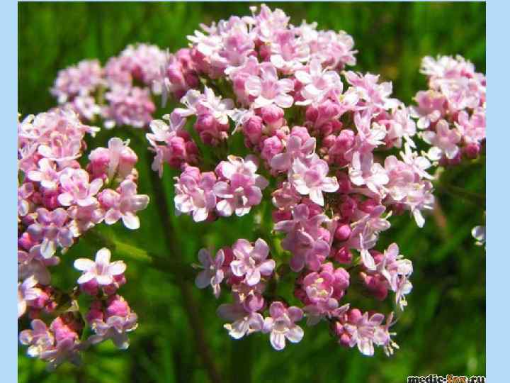 Химический состав. До 2 % эфирного масла (в составе борнилизовалерианат, изовалериановая кислота, пинен и др. ), валепотриаты, органические кислоты, алкалоиды. Применение, лекарственные средства. Применяют корневища с корнями валерианы в виде настоя, настойки, экстракта как успокаивающее (седативное) средство при нервном возбуждении, бессоннице, легких формах неврастении, вегетоневрозах, неврозах сердечнососудистой системы, климактерическом синдроме, для профилактики и лечения на ранних стадиях стенокардии, гипертонической болезни, при спазмах коронарных сосудов, желудка, кишечника. Лекарственное сырье входит в состав успокоительных, желудочных, ветрогонных сборов и используется для получения ряда комплексных препаратов: кардиовалена, валидола, валокордина, корвалола, валоседана, валосердина, персена, санасона, дормипланта, фиторелакса. Седативное действие препаратов валерианы проявляется медленно, но достаточно стабильно. Побочные эффекты. При длительном применении и передозировке препаратов возможны сонливость, чувство подавленности и угнетения общего состояния, снижение работоспособности. При прекращении приема препарата побочное действие быстро исчезает. Противопоказания. Применять с осторожностью при желчнокаменной болезни.