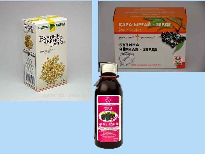 • Применение, лекарственные средства. Настой из цветков бузины в теплом виде применяют при простудных заболеваниях, хронических бронхитах, гриппе, ангине. Используют в качестве мочегонного средства при болезнях почек, сопровождающихся отеками. Наружно - в виде примочек, влажных повязок при ожогах, ранах, фурункулах. При геморрое рекомендуются ванночки из настоя бузины. Жидкий экстракт цветков бузины входит в состав препарата ново-пассит, используемого как седативное и анксиолитическое средство. • Побочные эффекты. Аллергические реакции, при длительном применении возможны отравления, связанные с содержанием в сырье цианогликозидов. • Противопоказания. Гиперчувствительность.