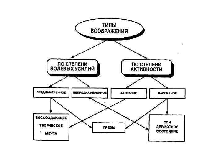 Воображение — это процесс преобразования представлений, отражающих реальную действительность, и создание на этой основе новых представлений. Процесс воображения всегда протекает в неразрывной связи с двумя другими психическими процессами — памятью и мышлением. Представление — это психический процесс отражения предметов или явлений, которые в данный момент не воспринимаются, но воссоздаются на
