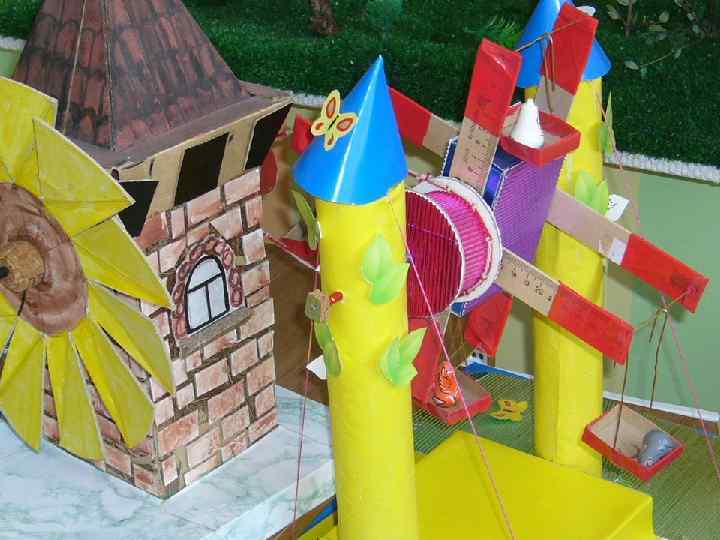 Преобразовательный центр «Мастерилка» Цель: проживание, преобразование познавательного опыта в продуктивной деятельности; развитие ручной умелости, творчества, выработка позиции творца Содержание среды: • объекты преобразования, • оборудование для деятельности (ножницы, клей, дырокол, степлер и др. ), • бросовый материал (коробки, бутылочки, проволока и др. ), • наглядные модели и алгоритмы (программы) деятельности. Деятельность детей: изготовление поделок, макетов, построек, игрушек, отражающих замысел по преобразованию предметов, тематических альбомов, стенных газет и пр. )