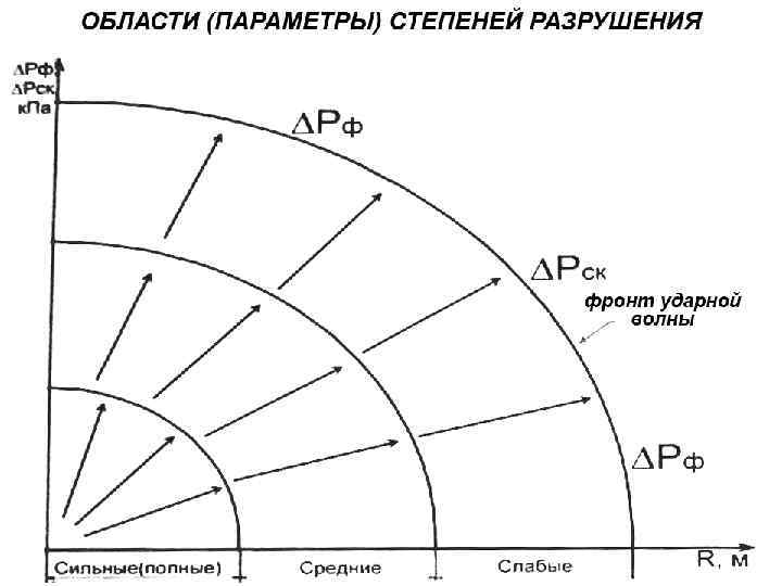 Основные параметры ударной волны Избыточное давление ∆Рф Давление скоростного напора ∆Рск Время действия ударной волны t у. в