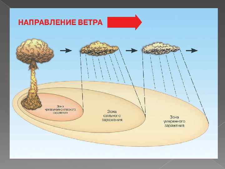 Радиоактивное заражение местности Среди поражающих факторов ядерного взрыва радиоактивное заражение занимает особое место, так как его воздействию может подвергаться не только район, прилегающий к месту взрыва, но и местность, удаленная на десять и даже сотни километров При этом на больших площадях и на длительное время может создаваться заражение, представляющее опасность для людей и животных.